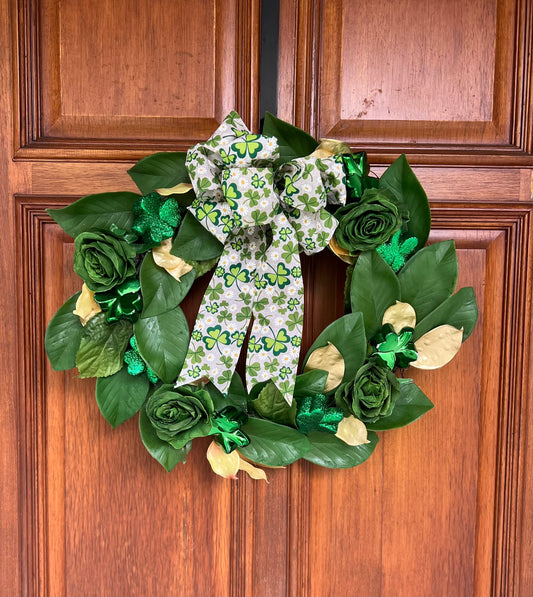 St. Patrick's Day Wreath with Magnolia Leaves & Roses
