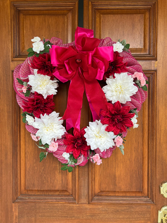 Heart-Shaped Dahlias and Deco Mesh Wreath