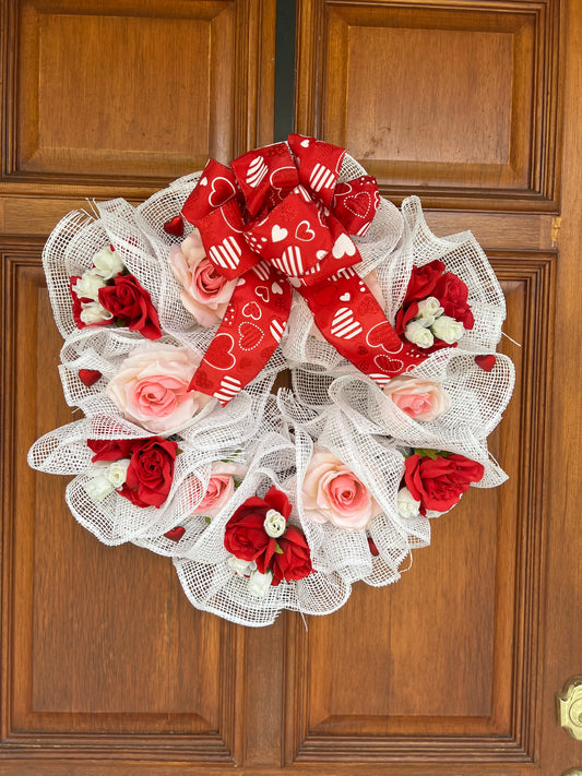 16" Deco Mesh Heart-Shaped Wreath
